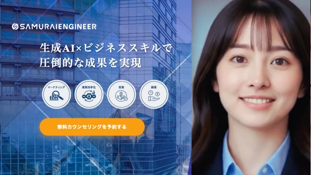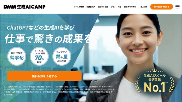 - 受講料が最大70%OFF!給付金対象 国のリスキーリング補助金を活用可能。金銭的な負担を大幅に抑えて本格的なAIスキルを習得できる。